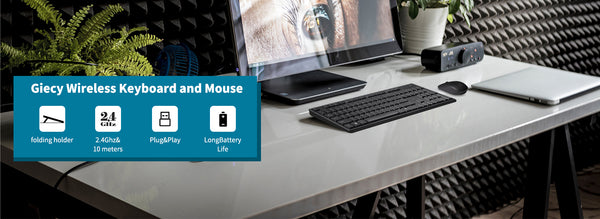Giecy Wireless Keyboard and Mouse Combo 2.4G Wireless Full Size Slim Keyboard, Low Power Mouse and Keyboard Ergonomic,for Windows PC, Laptop - Black