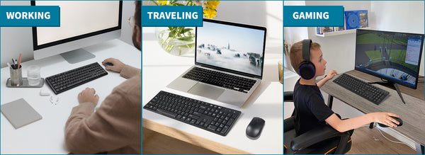 - 【Wireless silent design】 ①The noise-cancelling keys of the wireless keyboard and the mute design of the mouse make it easy to work or play without disturbing others. ②This mouse has three different DPI settings (800, 1200, and 1600) to suit your individual needs while working.